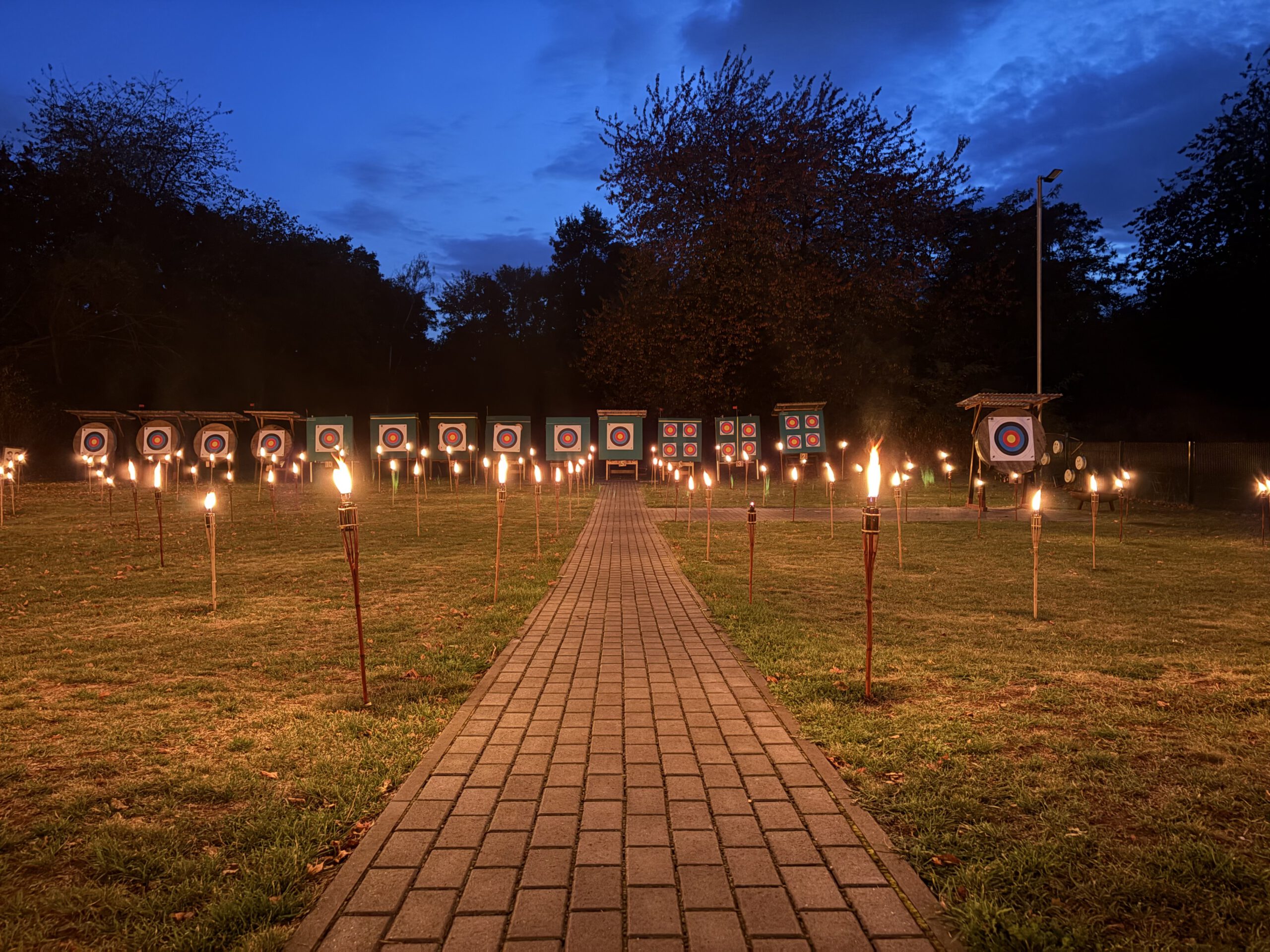 Dieses wunderbare Turnierformat teilt sich in eine Tageslicht- und eine Nachtrunde mit jeweils 12 Passen à 3 Pfeilen auf. Die Nachtrunde wird lediglich durch Fackeln beleuchtet, was das Schießen auf 30 Meter zu einer besonderen Herausforderung macht.